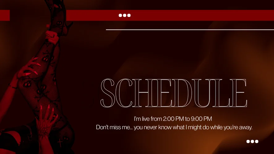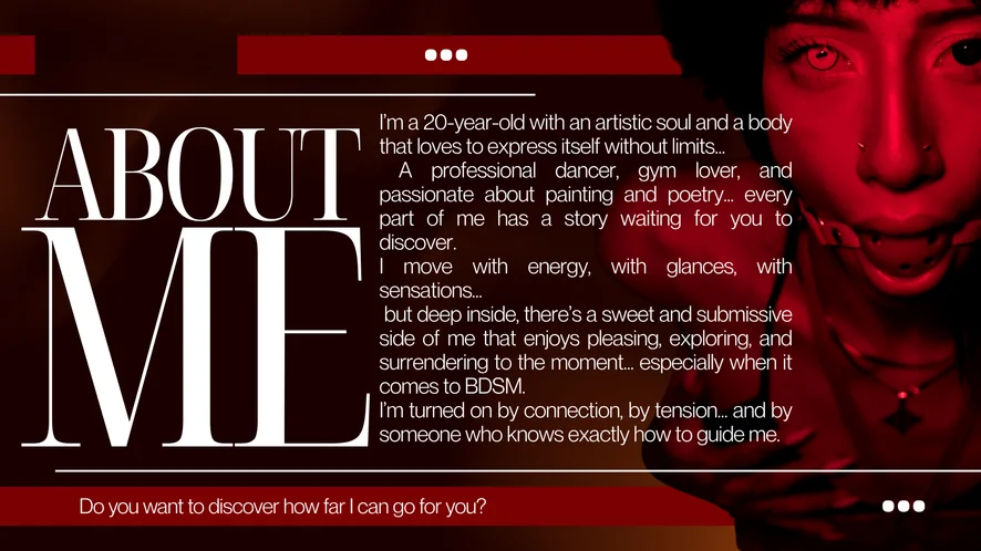 Ahegao, Tapas, Dança erótica, Beijo, Striptease, Linguagem explícita, Peitinhos, Topless, Salto alto, Rebolando, Espiadinha por baixo, Masturbação, Boquete, Massagem, Punheta, Masturbação com os pés, Show com óleo, Fetiche por pés, Exibicionismo, Pré-gozo, Dildo ou vibrador, Ejaculação, Anal, Fumantes, Garganta profunda, Atuação, Anais, Brinquedos sexuais