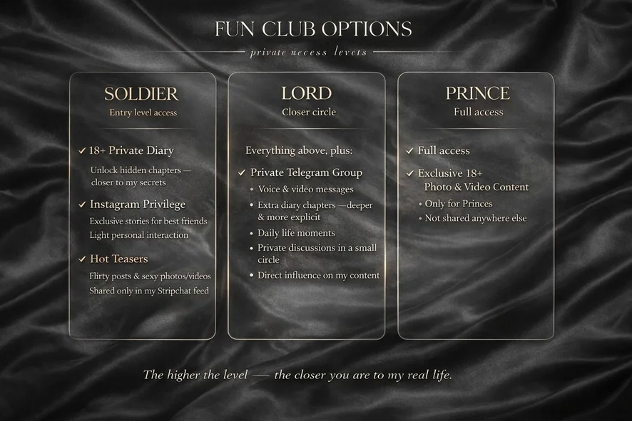 Fetiche por pés, Masturbação, Penetração com dedos, Boquete, Espiadinha por baixo, De quatro, Amante, Linguagem explícita, Dildo ou vibrador, Hardcore, Brinquedos sexuais, Topless, Striptease, Show com óleo, Dança erótica